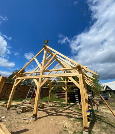 Suprojektuoti ir įgyvendinti fachverko (timber frame) konstrukcijų statiniai.