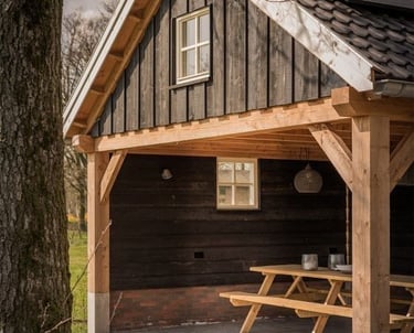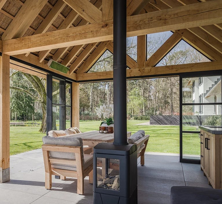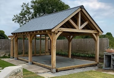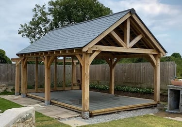 Mūsų pavėsinės kuriamos remiantis tradicine timber frame (fachwerk) statybos meistryste, kur kiekviena detalė turi paskirtį ir prasmę. Konstrukcijos gaminamos iš masyvios medienos, naudojant klasikines medžio jungtis be metalo, tvirtinamas mediniais kaiščiais.