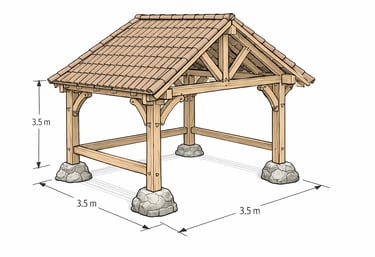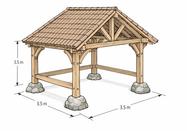 Kiekviena pavėsinė gali būti pritaikyta individualiai – dydis, proporcijos, stogo danga, medienos tipas. Tai sprendimas tiems, kurie vertina tikrą medį, laiko patikrintą konstrukciją ir estetiką be dirbtinumo.