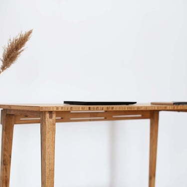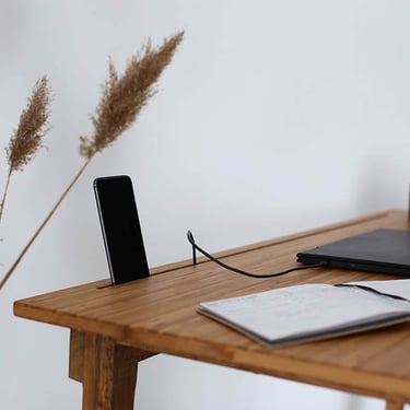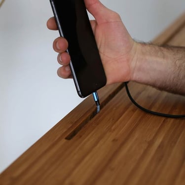 < Pritaikymas. Įkroviklį ir laidus galima pritvirtinti prie stalo nugarinėje dalyje, laidus pravesti per tam pritaikytas stalviršyje esančias ertmes. Paprasta. Tvarkinga. Minimalistiška. Patogu.